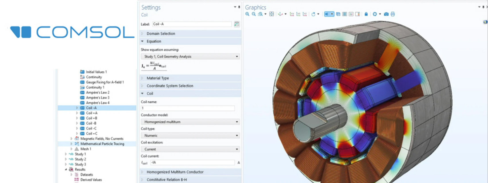 COMSOL Multiphysics® is a general-purpose simulation software used in all fields of engineering, manufacturing, and scientific research. The software brings fully coupled multiphysics and single-physics modeling capabilities, model management, and user-friendly tools for building simulation applications.