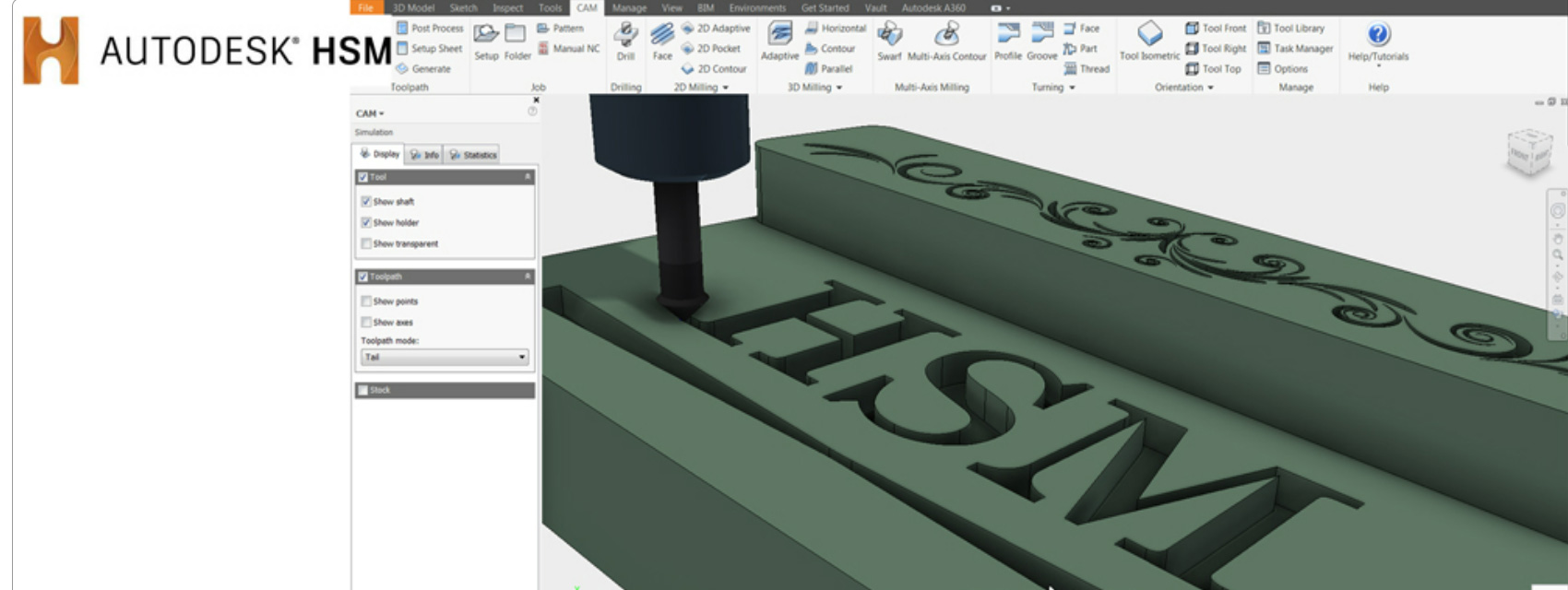 Autodesk HSM is a fully integrated CAM application for Inventor and Inventor LT. Depending on your version of Inventor HSM, effective generation of high quality 2D, 3D, 5-axis milling, and turning toolpaths for high speed machining are provided. Autodesk HSM is designed from the ground up to work inside Inventor, providing a logical extension of the parametric Inventor environment into the CAM world. Experienced Inventor users will feel right at home working with Autodesk HSM and will be able to create high-quality toolpaths within minutes.